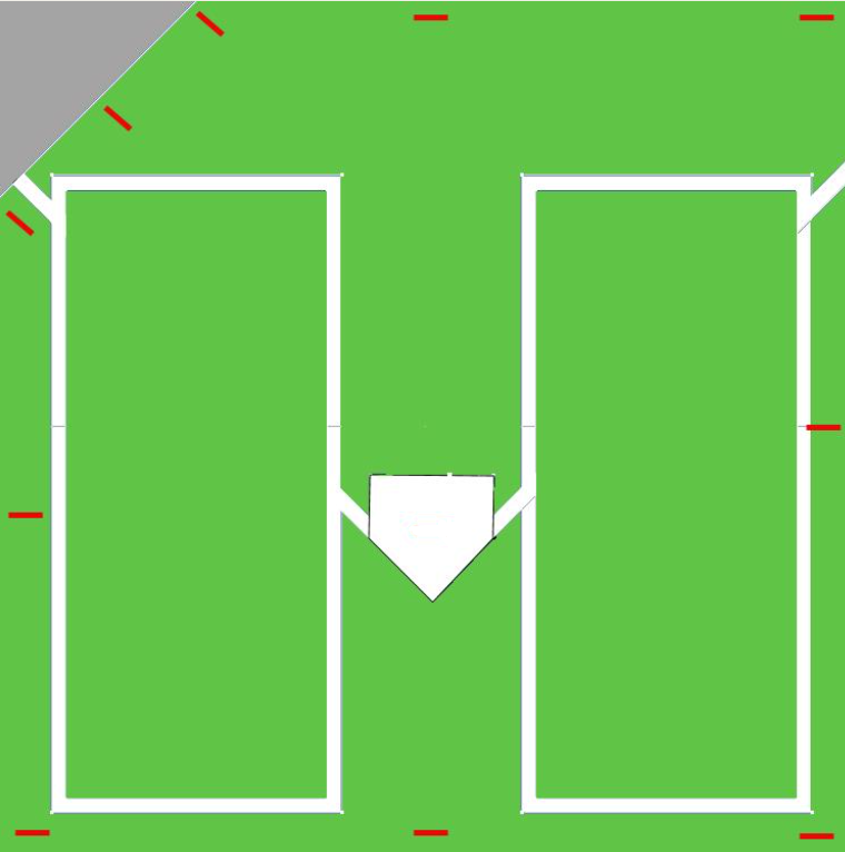 - Also collect Astro turf Batters Boxes – 1 per pitch stored outside storage cupboard building under Tarpaulin.